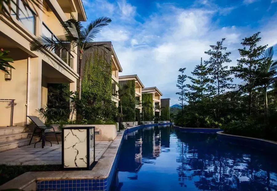 联排式亲水客房与3000㎡中心泳池相连,穿过后花园,只一出门,纵身一跃,便可如鲤鱼般欢脱地跃入狭长的湛蓝泳道,快意清凉。