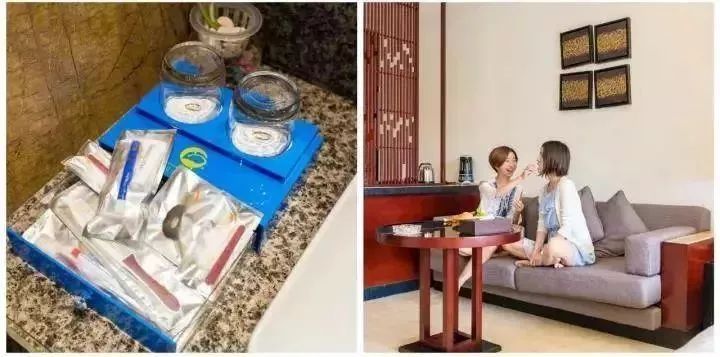 还有有私家温泉,而且这里的小细节也做得很贴心~连一般高逼格酒店才配备的剃须刀、橡皮筋、棉签、指甲锉都有!