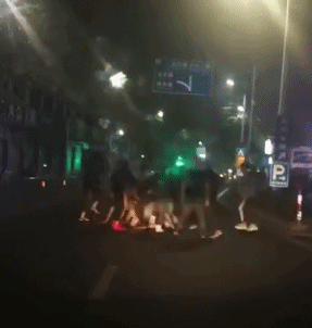 11月18日凌晨1时40分许,中山市石岐区南基路一家KTV外灯火辉煌,突然从里面冲出来一群年轻人对一名白衣男子拳打脚踢,将该男子二次打翻在地后,还不依不饶,拿来路边的不锈钢栅栏砸向白衣男子。