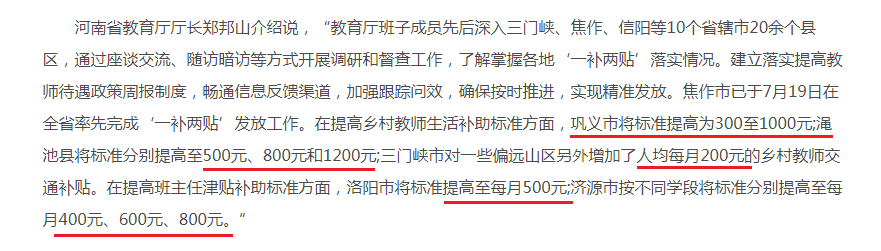 在这一点上,现在,河南省率先提升标准,打破了34年以来教师津贴10元封顶僵局,让提高教师待遇不再是一句空话,而变成真金白银的实惠。