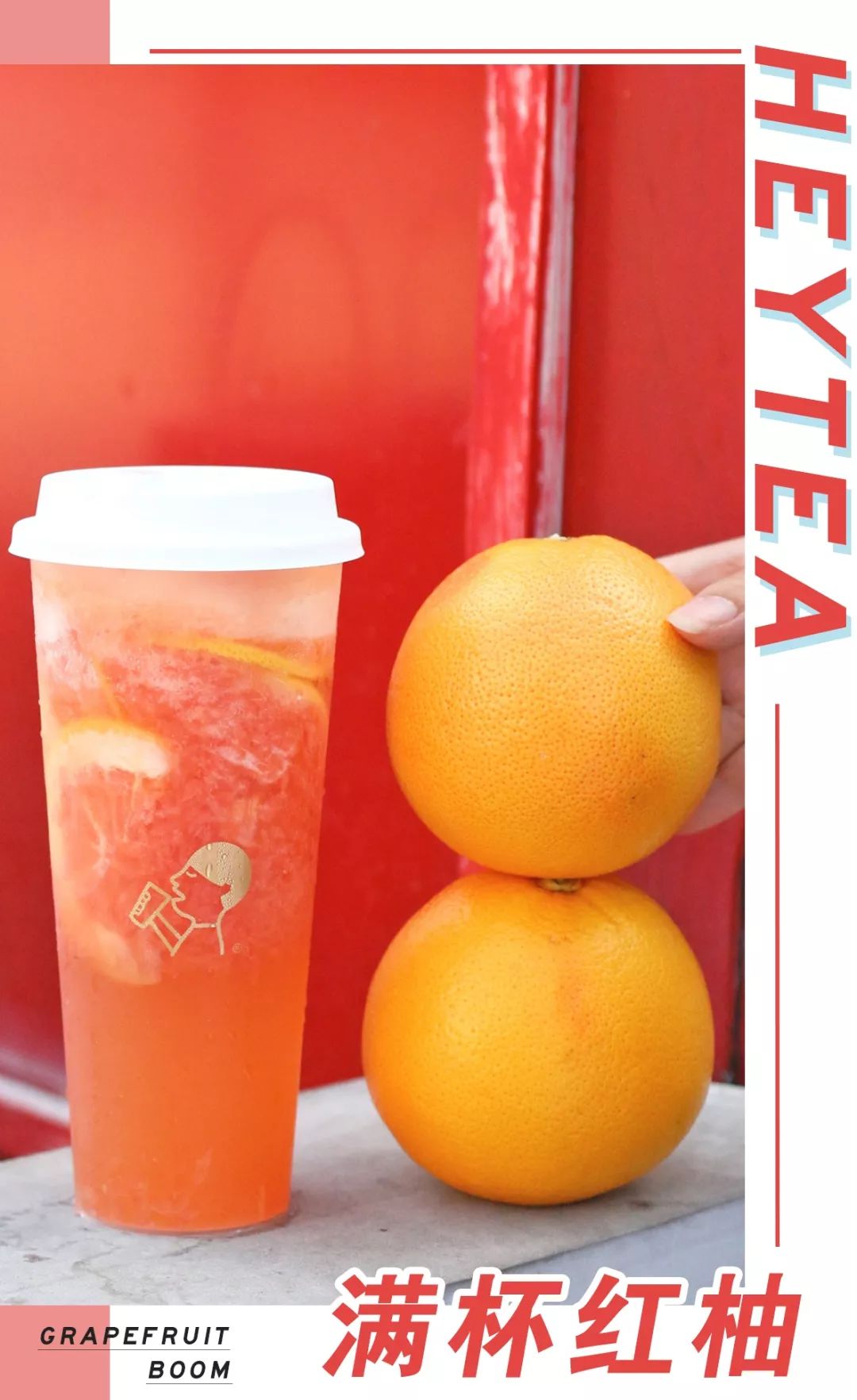 首创的满杯红柚,鲜切红柚片搭配定制绿妍茶底,茶香果香萦绕舌尖,满口清爽!