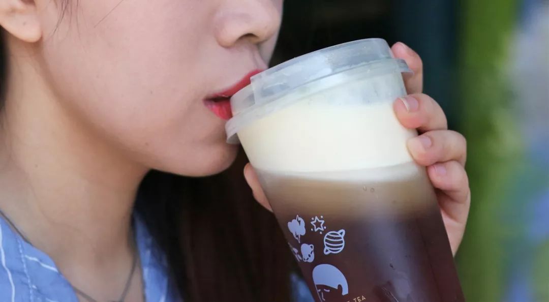 不需要用吸管,直接打开喜茶独创的旋转杯盖,45度大口喝下茶+芝士,完美!