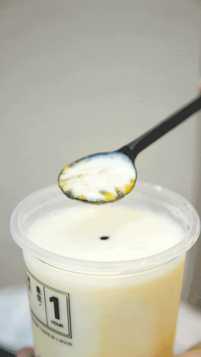 这杯酸奶里加的是从云南运过来的紫米,经过秘法烹煮后静置冷却才能搭配酸奶使用。酸奶需要发酵长达14个小时,每杯都是当天制作,确保每位消费者喝到的都是最新鲜的奶...