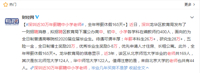 日期,#深圳近30万年薪聘中小学教师#的新闻也着实让人酸了一把。