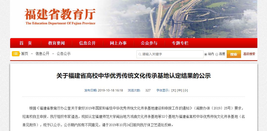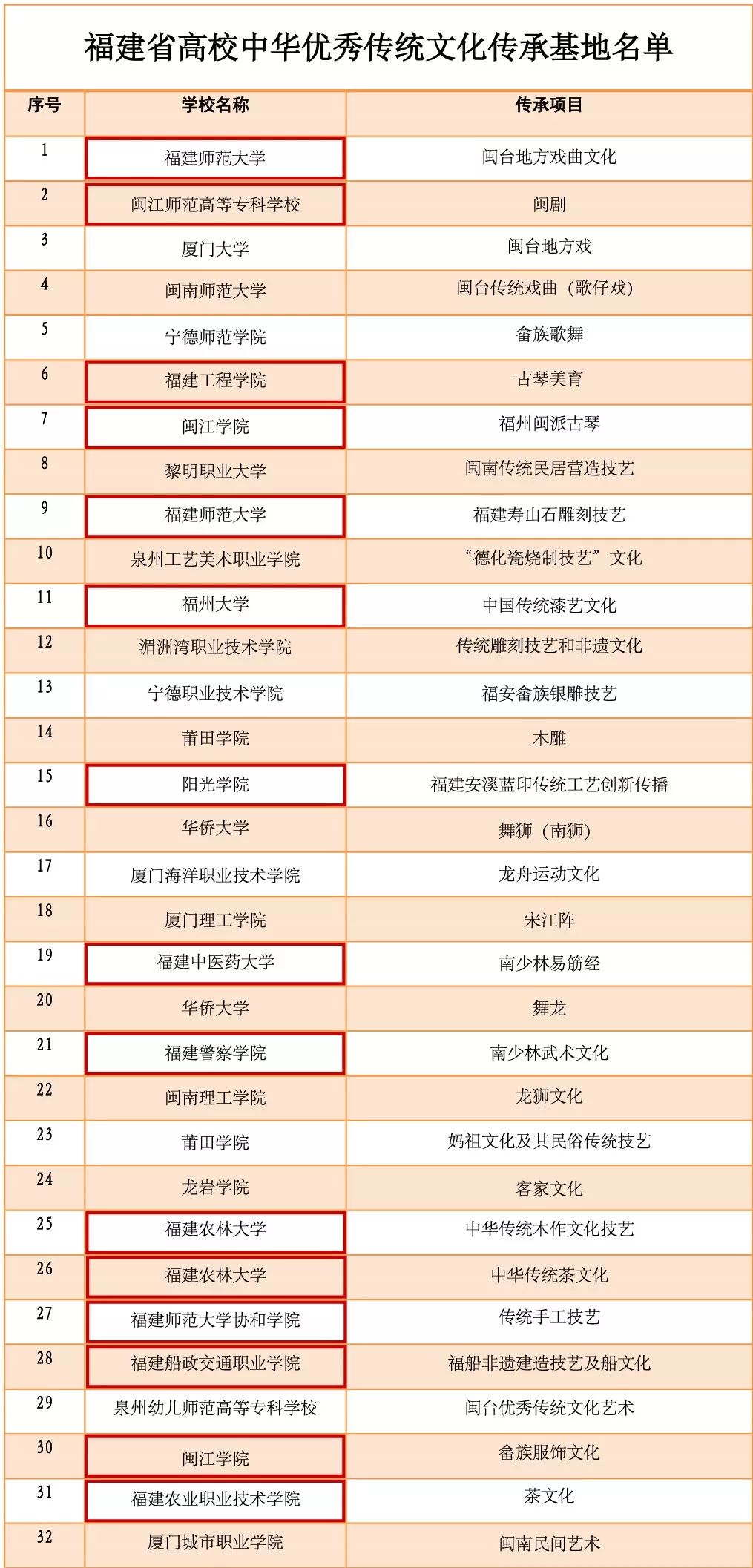 福建省教育厅公示福建省高校中华优秀传统文化传承基地认定结果