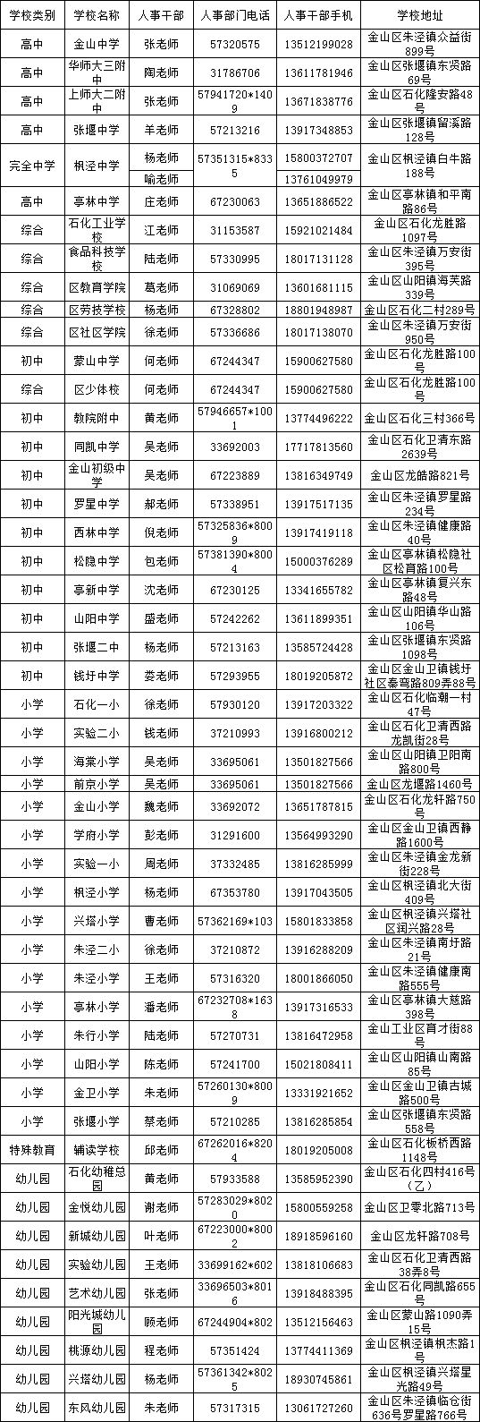 3.《金山区教育局2020年公开招聘教师岗位明细》