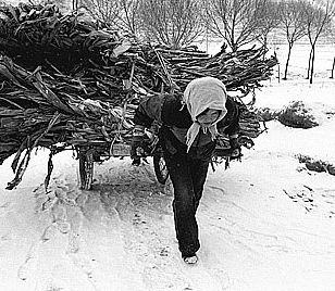那时家里穷的叮当响,一个“大厅”大部分是猪圈,妈妈用从山上劈回来的树枝架起了一层阁楼,用于堆放柴草,还用于藏地瓜干、花生、麦子、大豆等粮食。厨房呢,是临时盖的,为了与大厅相通,外公在大厅与厨房之间的墙壁上凿了一个洞,晚上我们母子用餐之后就这样小心翼翼穿洞到大厅。还有一个简陋的卧室。这几个房间破败不堪,都是“屋外下大雨,屋内下小雨”,屋里藏着的地瓜干等往往淋雨发霉。下雨的时候盆桶齐出接雨水,“咚咚咚”异常清亮刺耳。有一次下暴雨,雷电交加,雨水打湿了床上的棉被,妈妈赶紧把我们送往奶奶家,给我们交代后事,然后自己独自呆在破屋子里,穿好衣服,准备着屋子倒塌后把她埋在里面……我们在奶奶那边惴惴不安,担惊受怕。看来,妈妈对生活是感到绝望了!