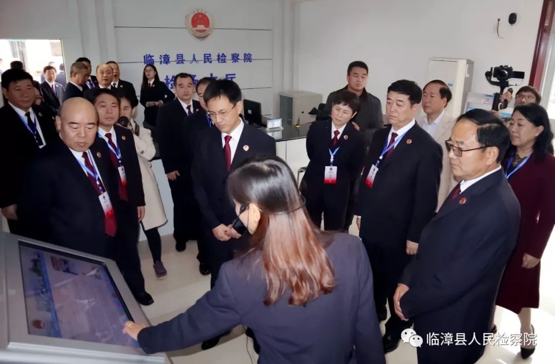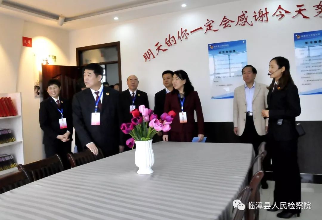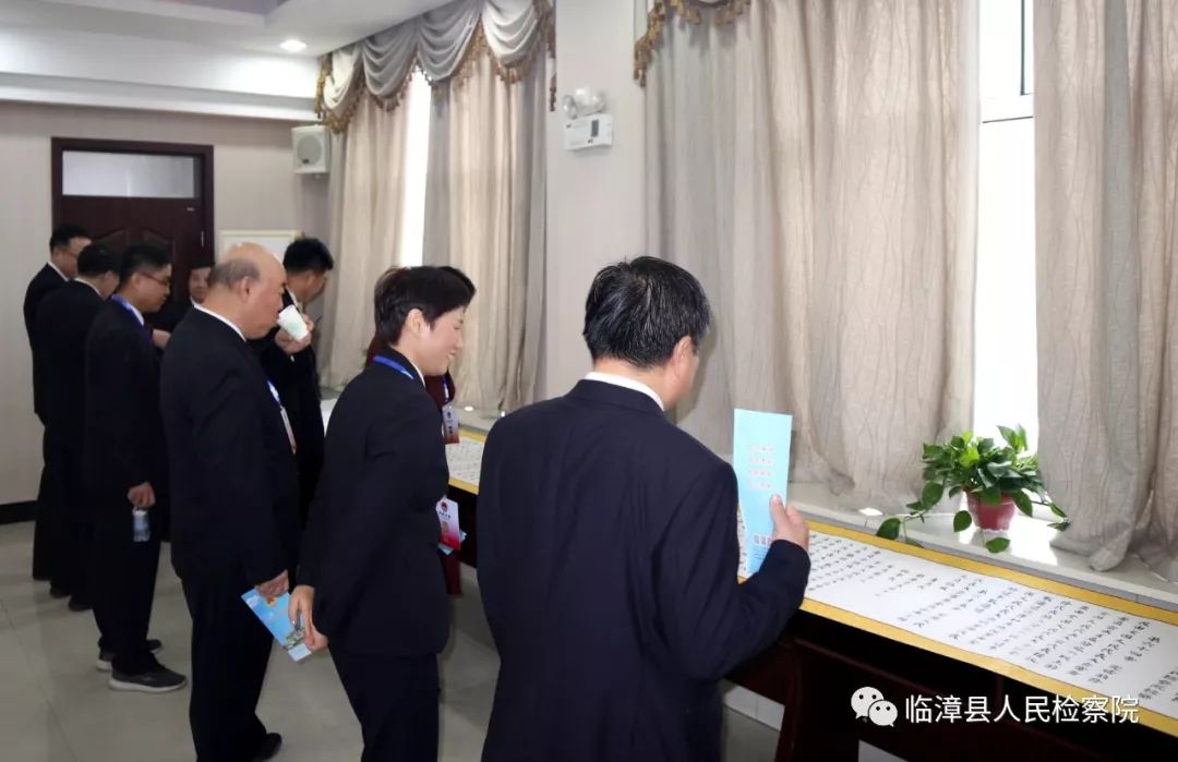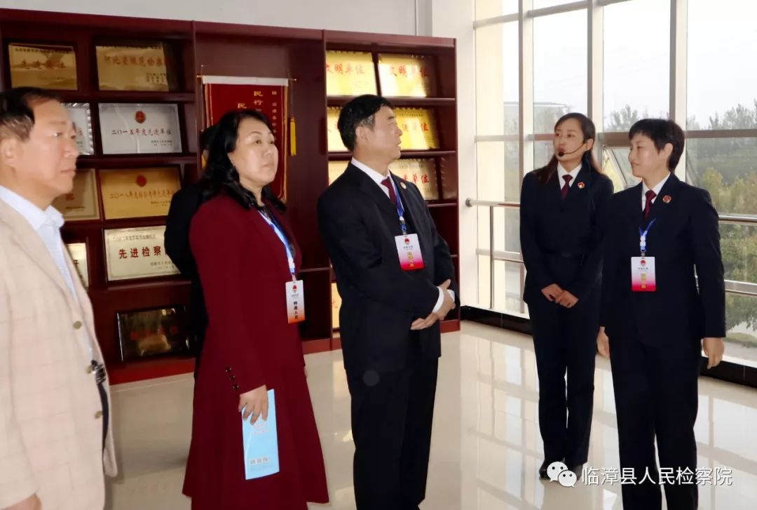 10月23日下午,邯郸市检察院全体党组成员及十九个基层院检察长,到临漳县人民检察院观摩指导工作。临漳县人民检察院党组书记、检察长晏金红邀请县政法委书记卢相文及省人大代表、政协委员一同参加观摩活动。观摩团一行参观了临漳县人民检察院12309检察服务中心、检察文化长廊、“不忘初心、牢记使命”主题教育办公室等场所,观看了“工学大竞赛”暨创建“美丽基层检察院”专题片,听取了11项重点工作介绍,为临漳检察工作提出了宝贵意见。
