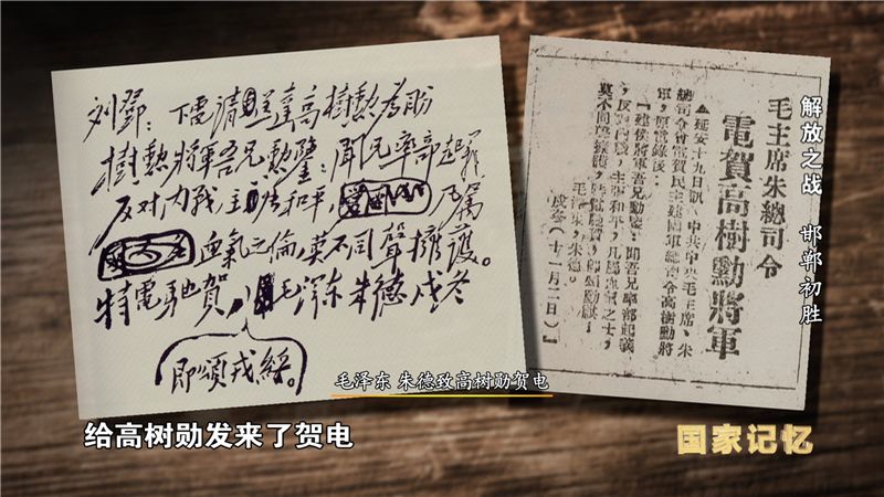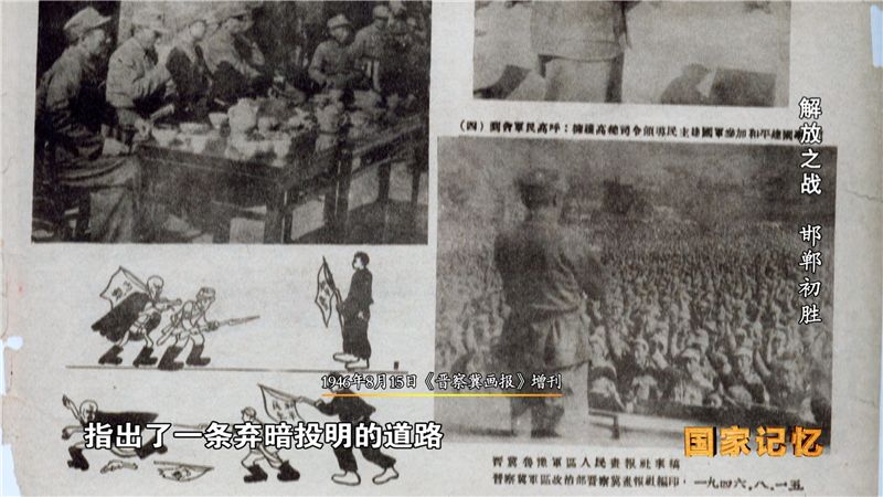 其中第二集《解放之战·邯郸初胜》主要内容为:蒋介石迫于全国人民反对内战、要求和平的压力,在重庆谈判中与中共签订了“双十协定”。但在协议公布之后,蒋介石仍然实行其大规模进犯解放区的原定计划,晋冀鲁豫军区部队主力在平汉铁路邯郸以南地区被迫对国民党军进行自卫反击并取得了胜利。中共中央确定了向北发展、向南防御的方针。