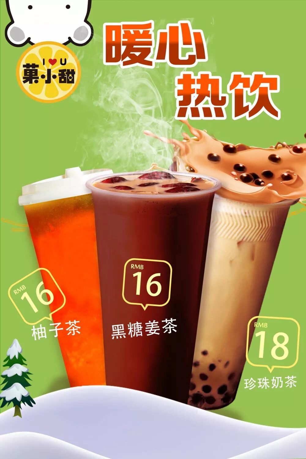 柚子茶、黑糖旺旺、蓝莓哆哆第二杯半价