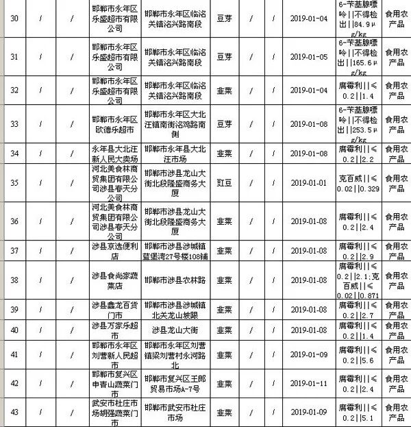 10月22日,邯郸市场监督管理局网站发布《关于邯郸市本级食品安全监督抽检信息的公告(2019年第6期)》。本次发布的监督抽检信息均为食用农产品,共955个批次,其中合格906个批次,不合格49个批次。其中令人关注的是,在这些不合格食用农产品中,多数为韭菜。