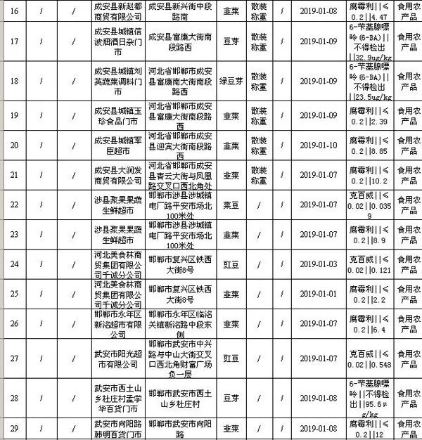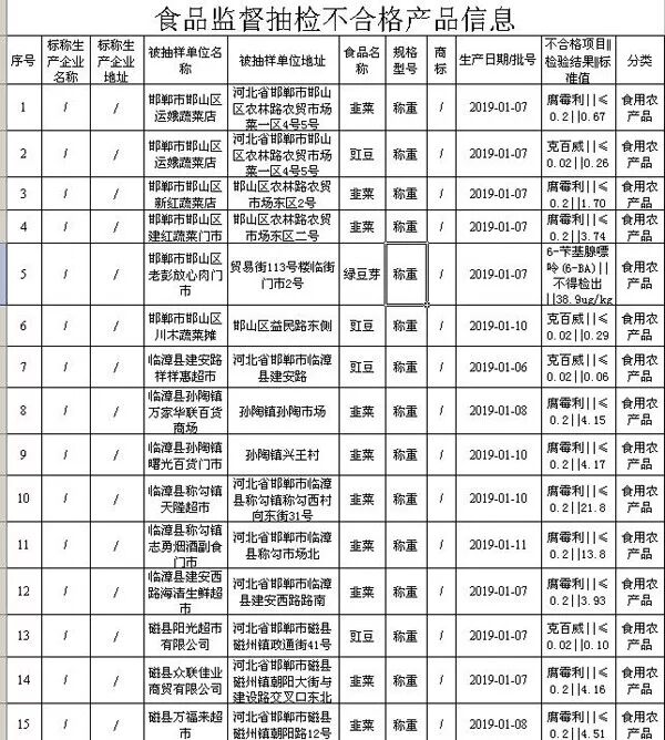【关注】韭菜隐患居多!邯郸公布本级食品安全监督抽检信息
