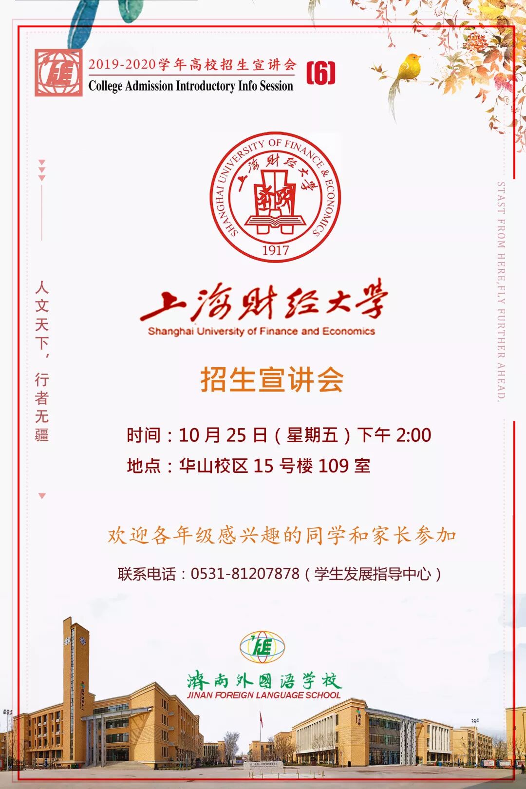 招生宣讲‖上海财经大学2019-2020学年高校招生宣讲会