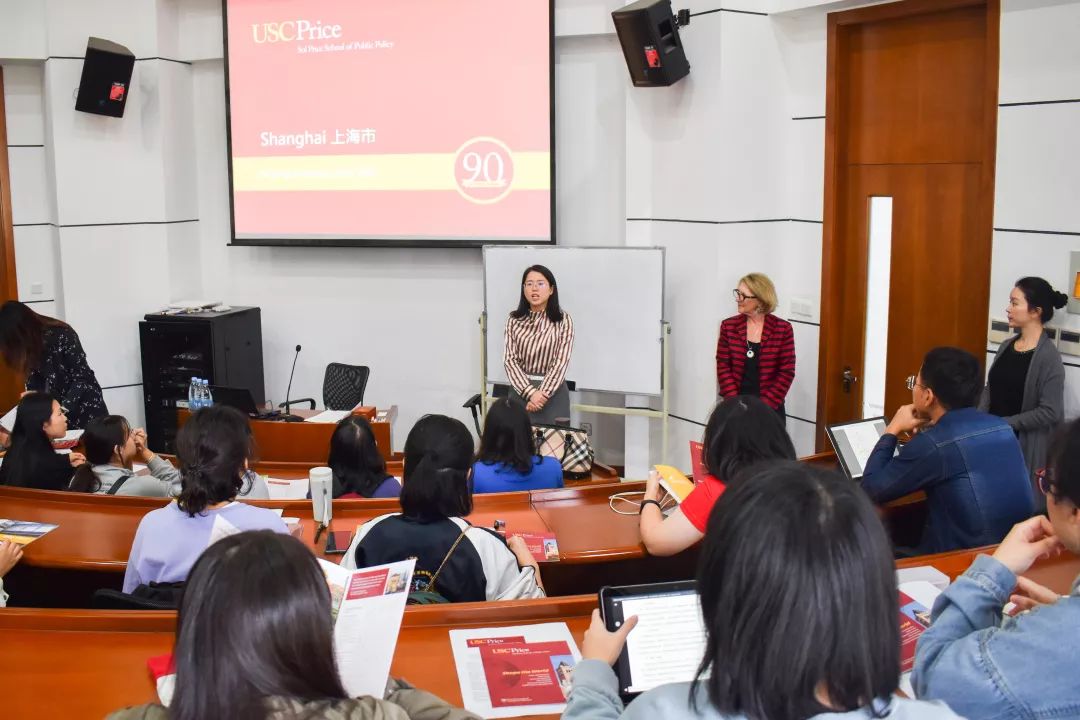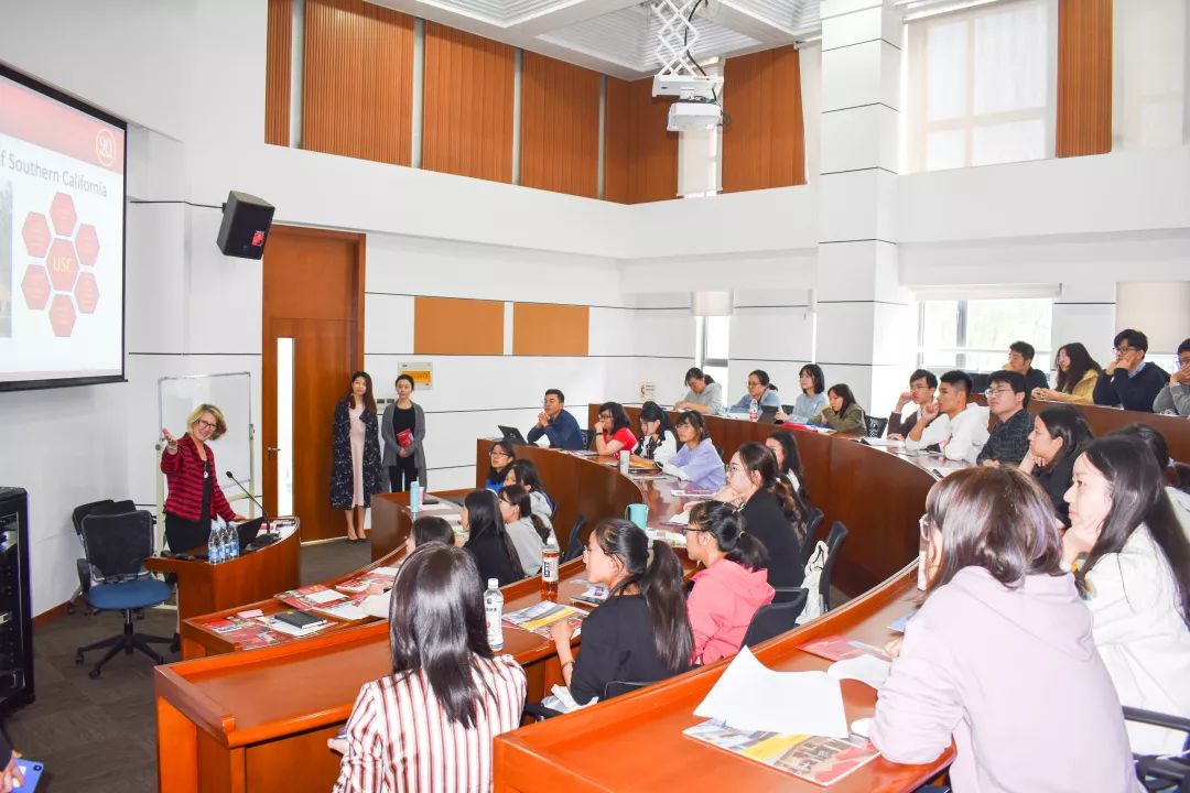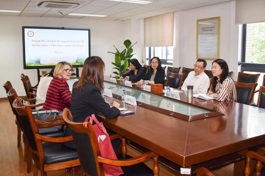 2019年10月18日,美国南加州大学(USC)Price公共政策学院的副院长Carol Rush女士及南加大驻上海办事处代表来访我院,与我院领导见面交流,增进互相了解,洽谈招生和合作可能,并面向我院学生开展宣讲会。