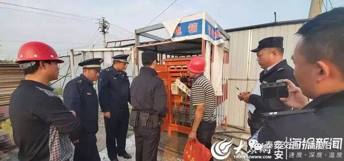 10月13日16时,执法人员再次检查该工地时,发现现场正在施工,塔吊正在运转,配电箱封条已撕开。机动大队执法人员于16时06分拨打110报警电话,泰安市公安局岱岳区分局满庄派出所接到报警赶到施工现场介入调查。执法人员就该工地两次撕毁封条情况积极配合派出所调查,提供相关证据及相关文书。