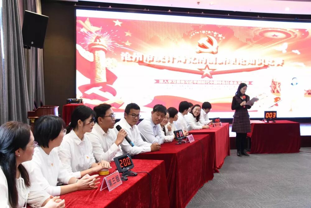 参赛选手由市统计局24名40岁以下、富有朝气和活力的党员干部组成,通过现场抽签分为6组,知识竞赛内容丰富、形式多样,涵盖了《中国共产党章程》《习近平新时代中国特色社会主义思想学习纲要》《习近平关于“不忘初心、牢记使命”重要论述选编》《中国共产党纪律处分条例》以及习近平总书记最新重要讲话和党的十九大精神等知识点,比赛共设置了“必答题”“抢答题”和“风险题”三个环节共计120道题目。