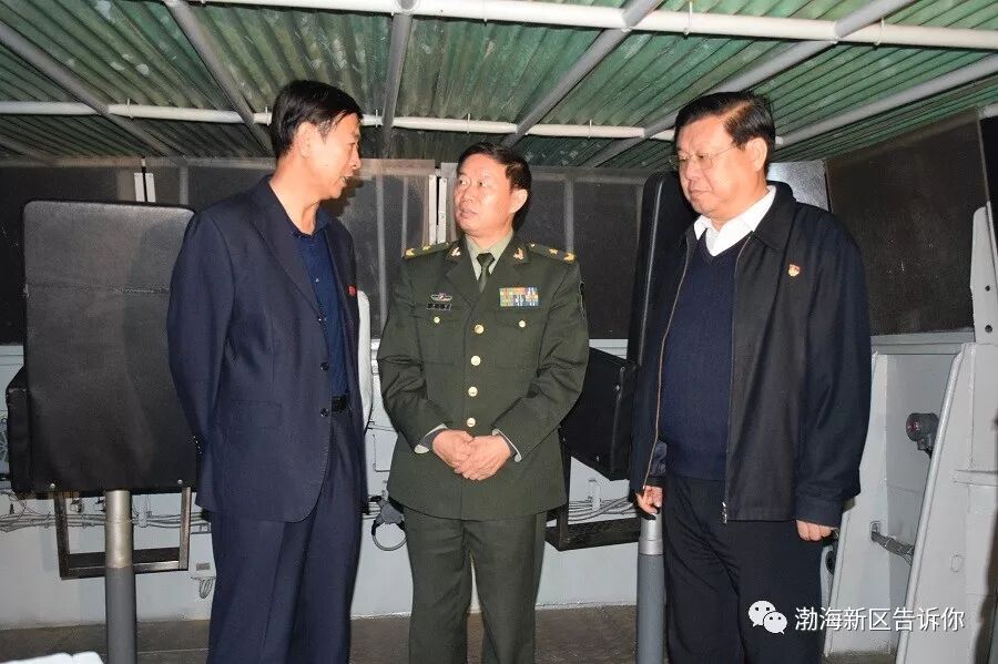 10月23日下午,河北省军区副政委要文须一行到沧州渤海新区考察。沧州市委常委,渤海新区党工委书记、管委会主任张国栋陪同考察。