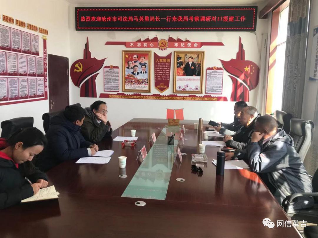10月20日沧州市司法局党组成员、副局长马英勇、沧州市律师协会副会长刘剑到革吉县司法局考察调研对口工作,于下午4时许,在司法局二楼会议室召开调研工作座谈会,县委副书记、政府县长王明杰出席会议。
