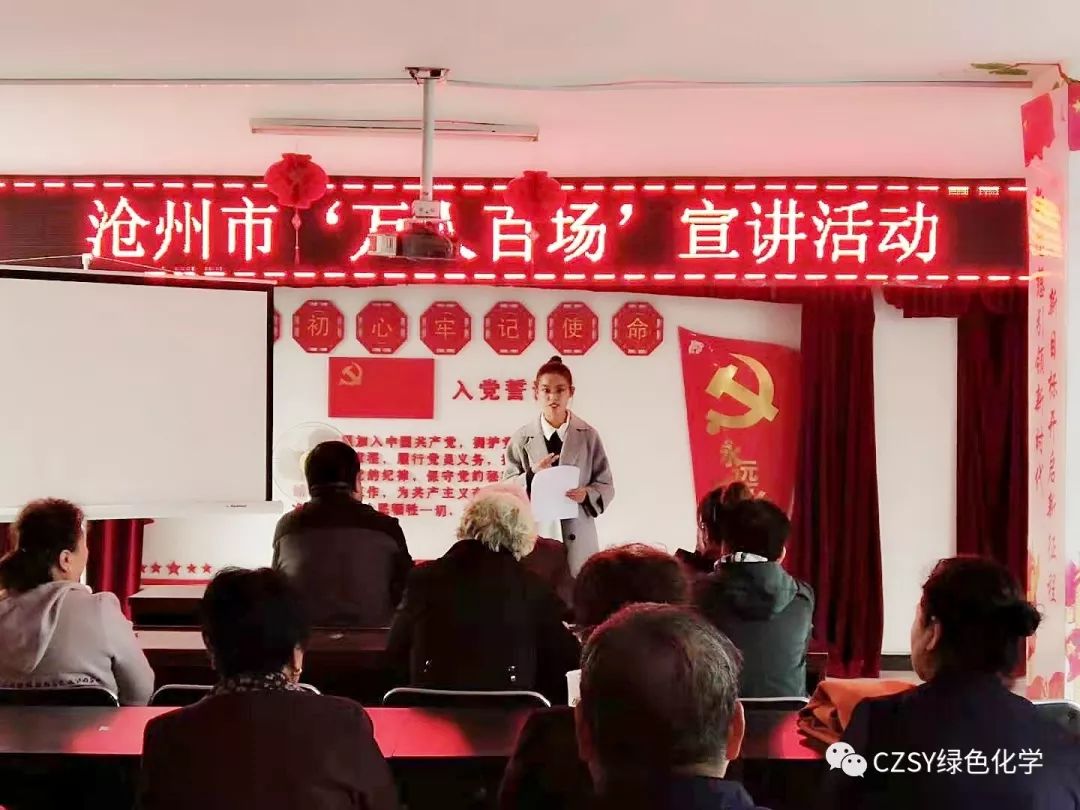 2019年10月18日,由中共沧州市委宣传部、中共沧州市委讲师团、沧州市社科联主办,沧州师范学院承办的沧州市“万人百场”宣讲活动正式开始!我院学生刘兴杰、陈明昭、张黛月和李胜男在孔令伟老师的带队下,分别于南湖社区和北官屯村进行演讲。