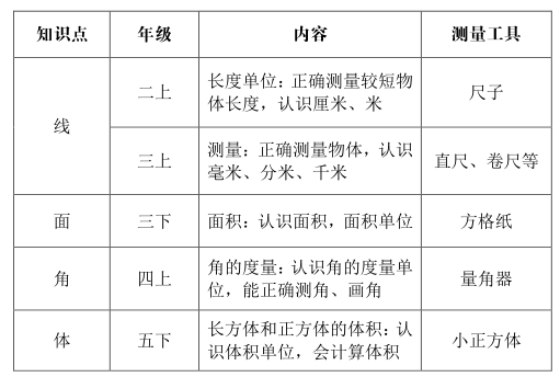 长度的测量是以较小的线段(1厘米、1分米等)作为标准去测量,从而产生了测量单位(厘米、分米等)和测量工具;面积的测量是用小正方形的面积(1平方厘米、1平方分米等)作为标准去测量,从而产生了测量的单位(平方厘米、平方分米等),并推导出计算面积的公式。体积的测量是以较小的小正方体(1立方厘米、1立方分米等)作为标准去测量,从而产生了测量单位(立方厘米、立方分米等),并推导出计算体积的公式。通过迁移和类比,我们不难推出,角的测量应该用较小的角(1度)作为标准,也应该有自己的测量单位(度)、测量工具和测量方法。另外,七年级上册第四单元《基本平面图形》这一单元,在小学学习的基础上,又引出了新的度量单位:分、秒,并厘清了度、分、秒之间的进制。