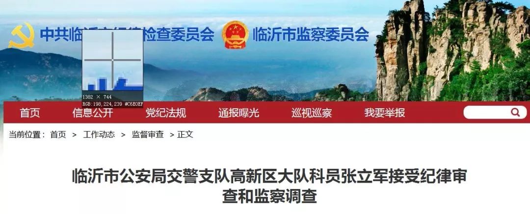 临沂市公安局交警支队高新区大队科员张立军涉嫌严重违纪违法,经临沂市纪委市监委指定,目前正接受沂南县纪委县监委纪律审查和监察调查。