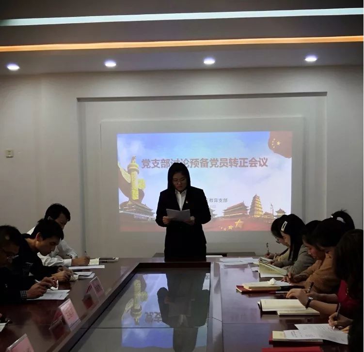 根据区教育和体育局党组下发的预备党员转正通知要求及工作部署,中共临沂工业园区教育支部于2019年10月23日中午召开了讨论预备党员转正会议,学校全体党员参加,区教育和体育局王桂坪同志对预备党员转正过程进行了全程指导。