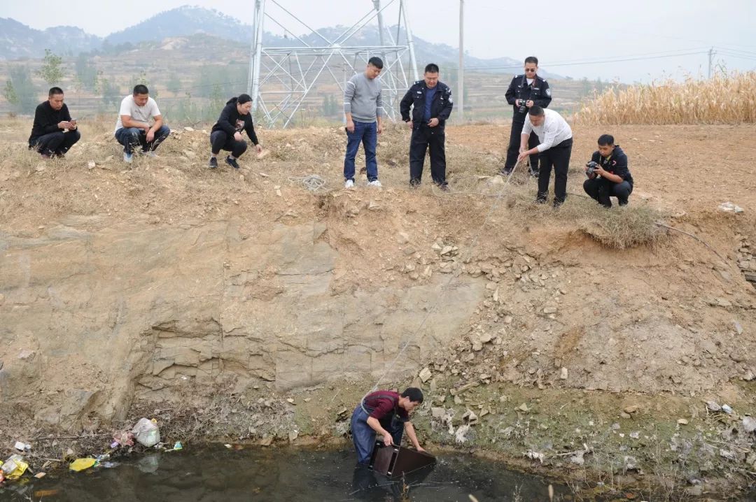 (办案民警打捞被犯罪嫌疑人丢弃的保险箱)