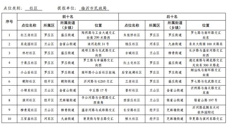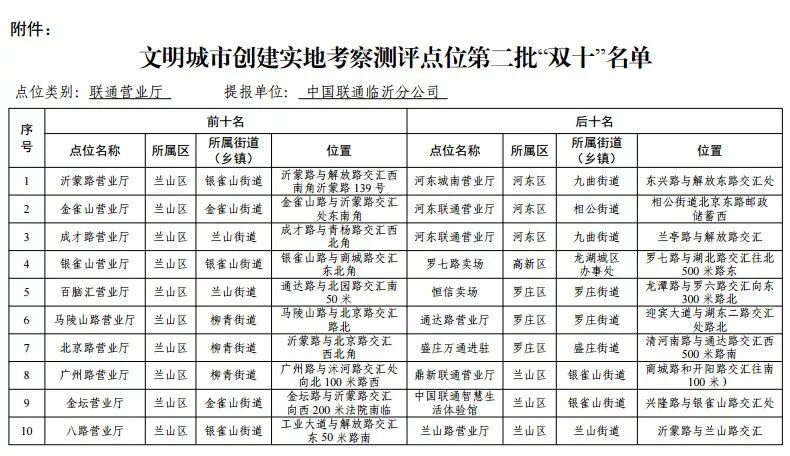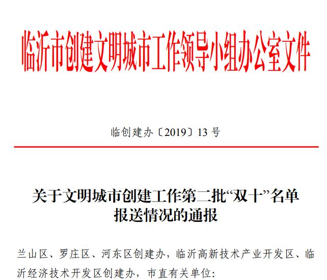 10月21日 临沂市文明城市创建工作第二批“双十”名单公布↓↓↓
