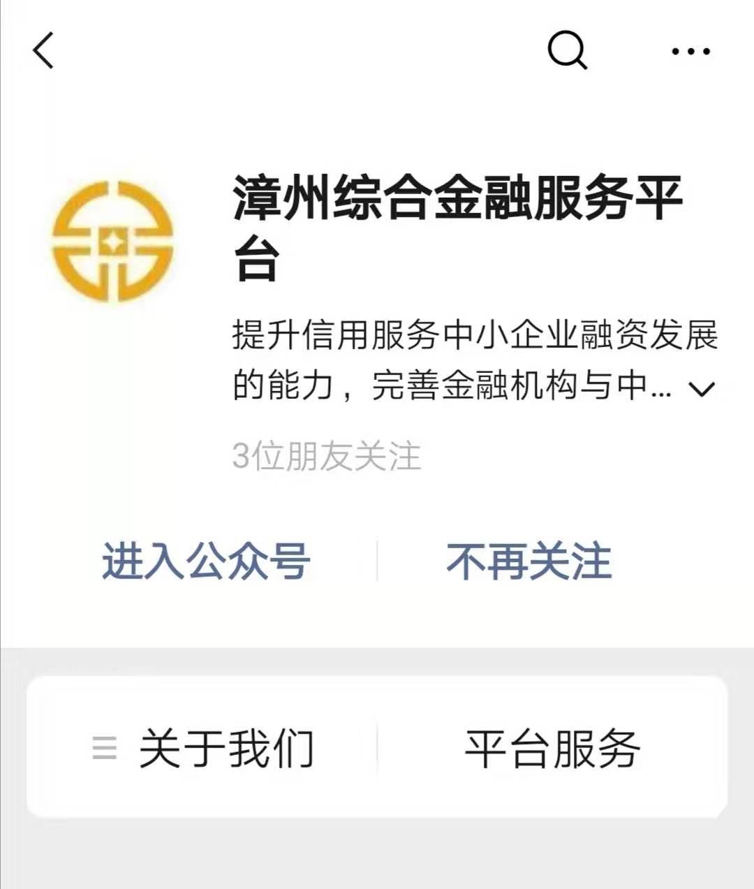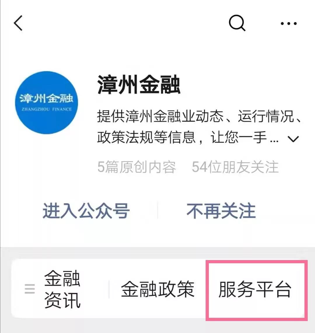3关注“漳州综合金融服务平台”公众号,点击菜单栏的“平台服务”进行操作