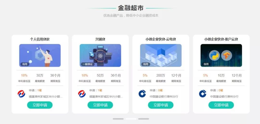 漳州综合金融服务平台是漳州市地方金融监督管理局结合自身职责,推出方便中小企业融资的一项改革创新项目。平台旨在突破企业需求和金融服务主体之间信息不对称的困局,通过政府搭台,打造“永不落幕的政银企对接会”。平台已引进15家银行、4家类金融公司、1家产业股权投资公司作为试点机构入驻,发布特色金融产品60多个,建立资金方与企业沟通的桥梁,为企业提供多样化的融资选择,进一步助力企业融资,助推“大抓工业、抓大工业”。