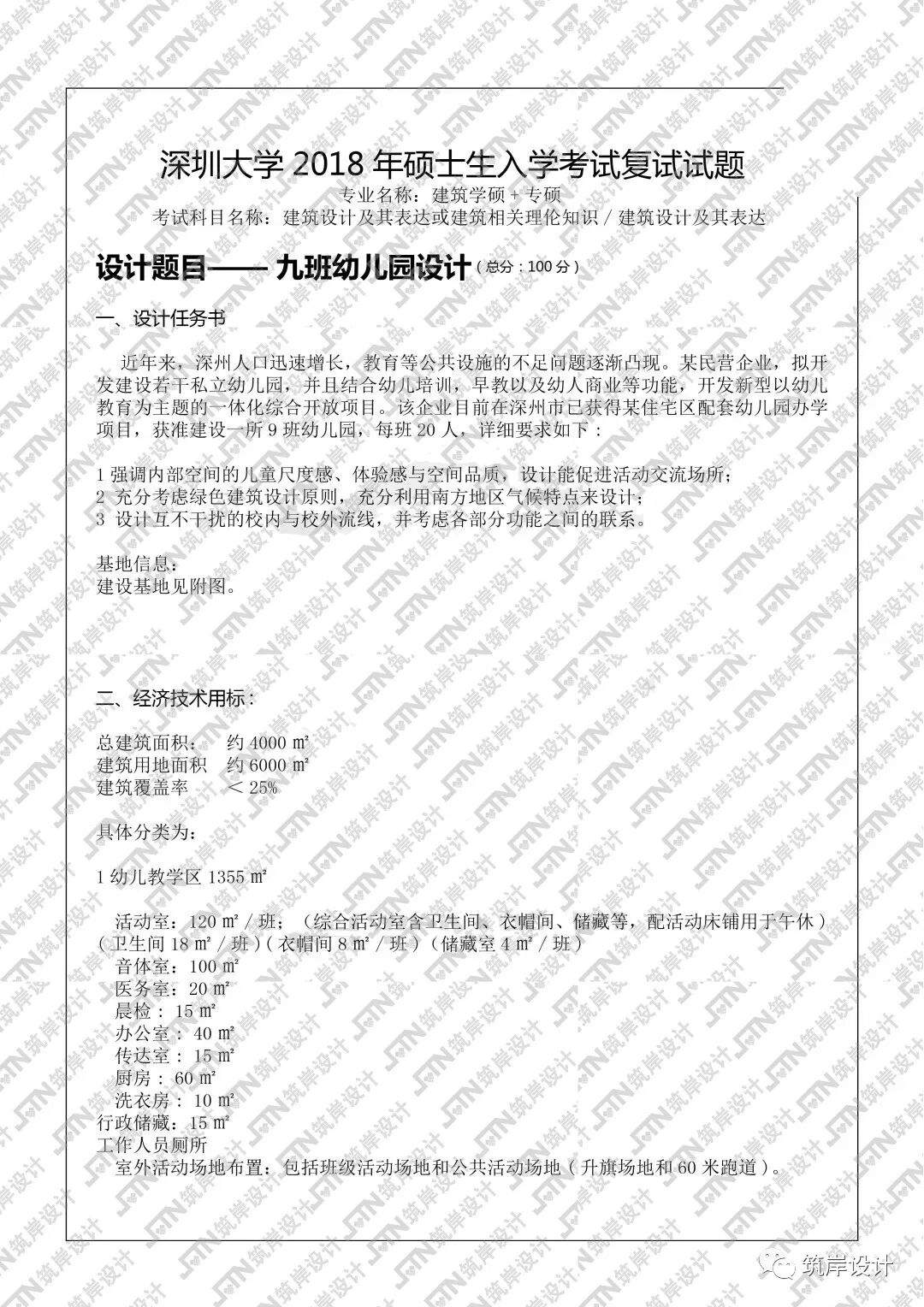 深圳大学2018复:九班幼儿园设计任务书讲解
