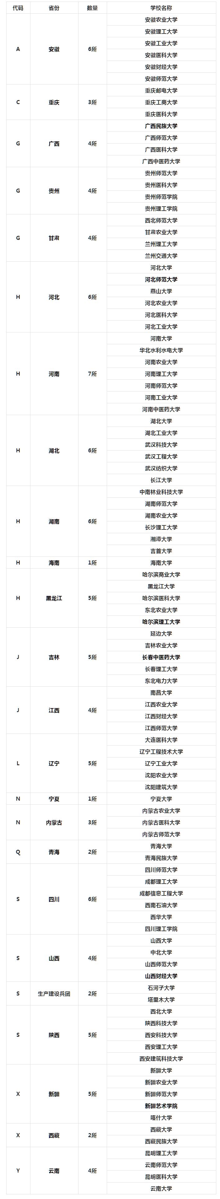 ps:河北工业大学、东北农业大学、延边大学、南昌大学、湖南师范大学、海南大学、云南大学、西藏大学、西北大学、宁夏大学、青海大学、新疆大学、石河子大学都已经是“211工程”大学。
