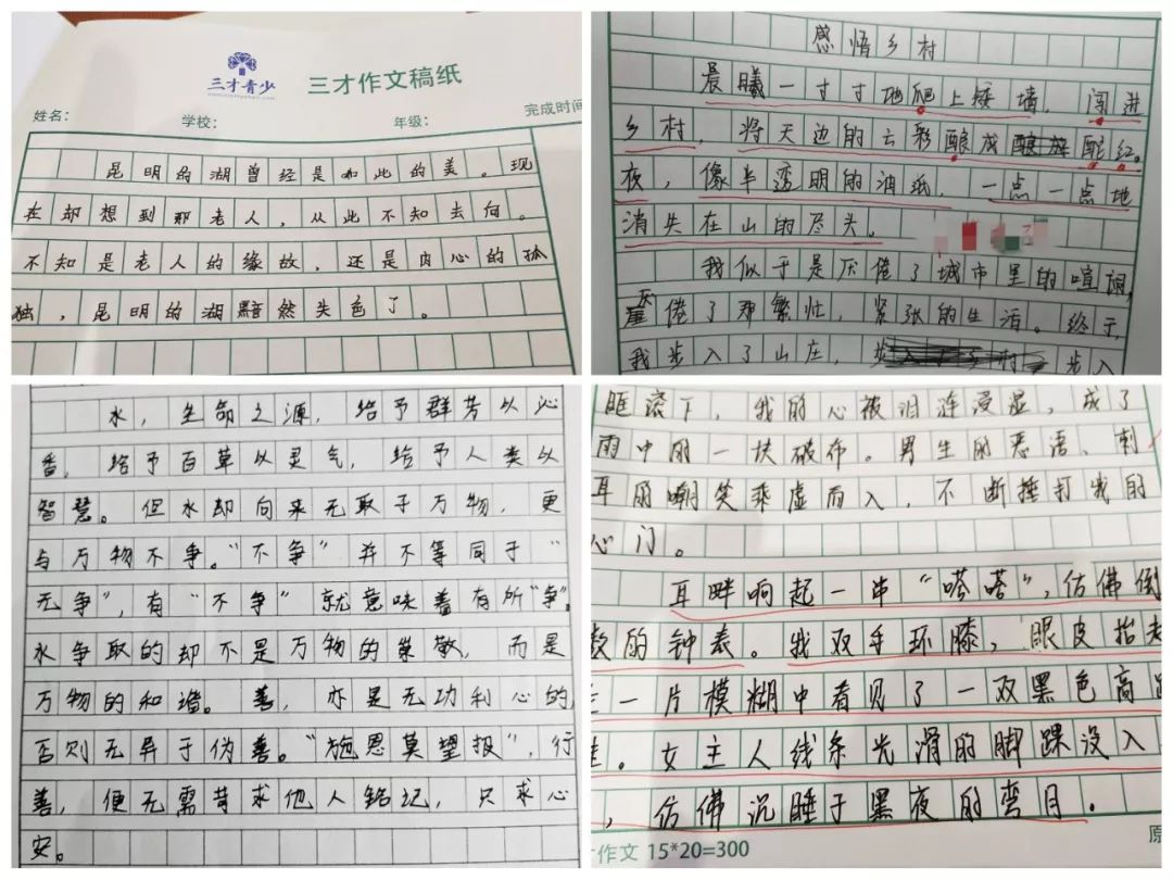 3、训练结束后,20篇作文经老师评改后原件寄给家长。