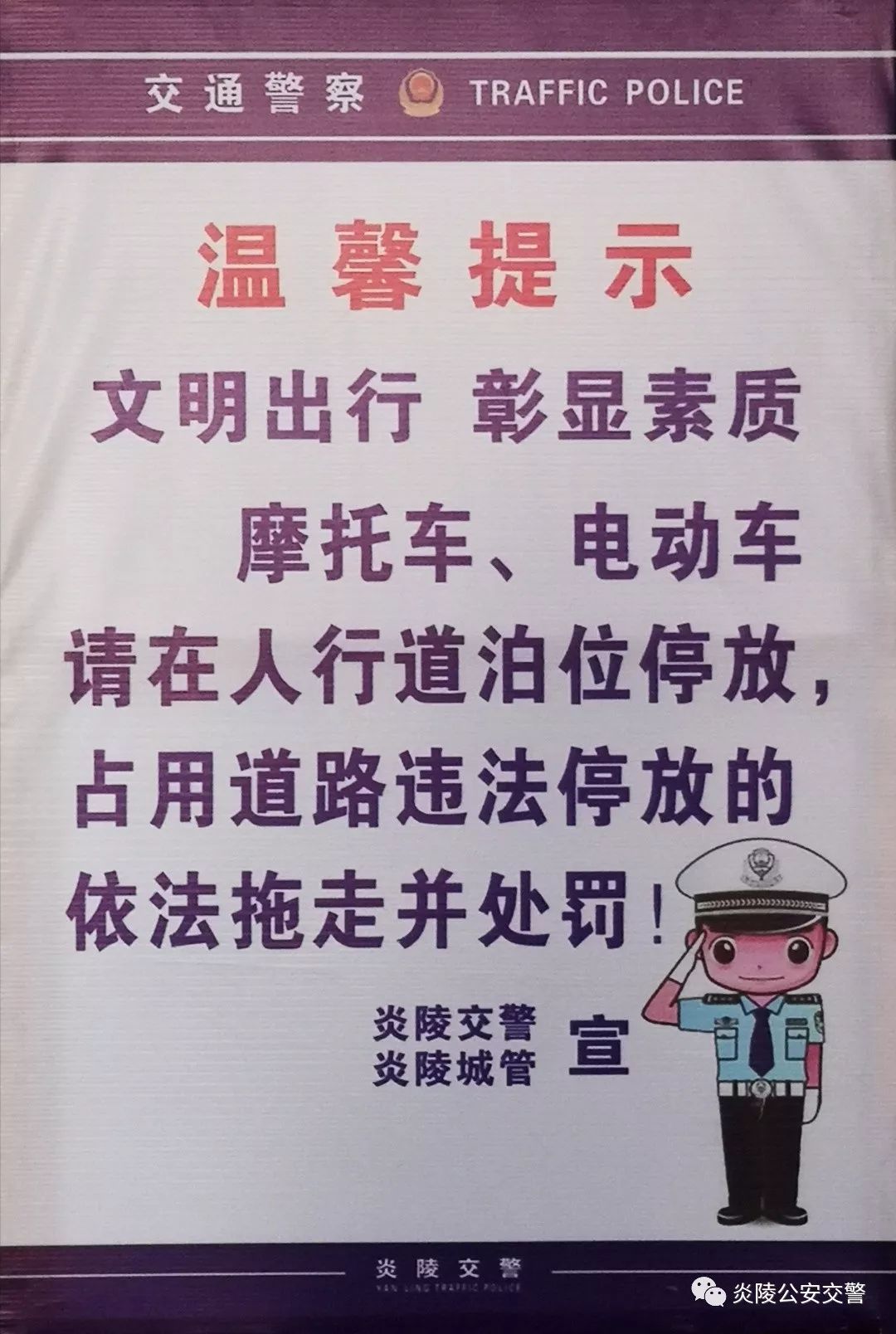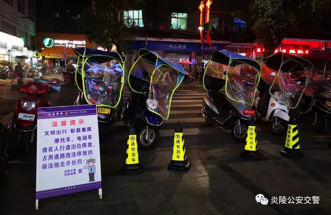 摩托车(电动车)应停放停车场或准许停放车辆的地点,按“指定位置、有序停放”进行管理。对未按指定位置和停车线停放的,炎陵交警和城管部门有权利和义务对乱停乱放的车辆进行制止、规劝,车主或使用人应予以理解和积极配合,服从指挥。