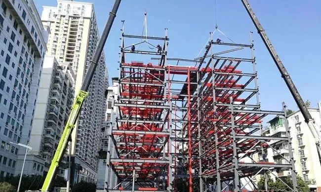 梧州新兴珠宝路新建立体停车库据项目负责人陈先生介绍,项目分为A、B塔进行建设,两塔之间紧密相连,共建设9层高的立体停车库,总体高度为24.9米。其中,1层为智能停车操作处及设备用房,2—5层可停放80辆SUV,6—9层停放80辆小型汽车。