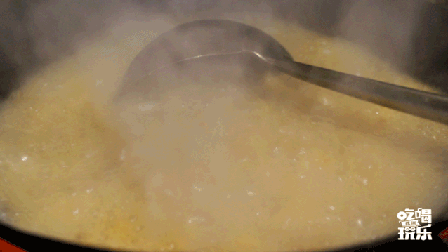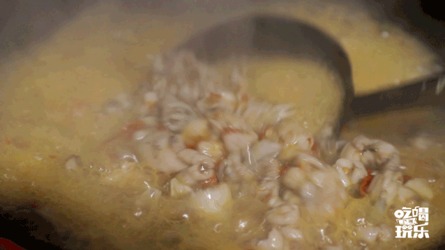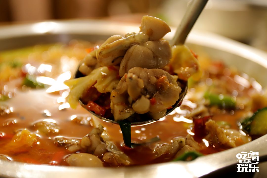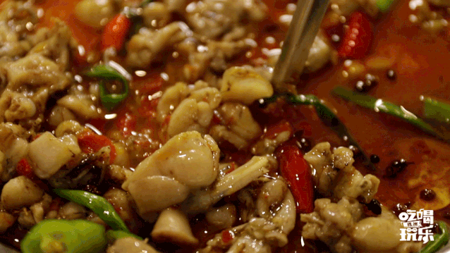 如果觉得用筷子一块一块夹起来不过瘾,还可以用漏勺,一勺接一勺的,这时的锅好像是个无底洞,更是衬出一锅蛙的分量满满!