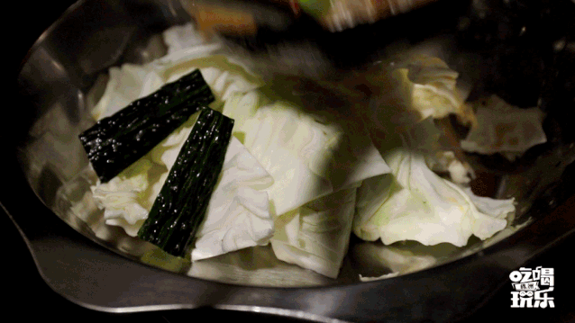 以切成条的黄瓜和大片的包菜于锅中打底,盛出来后,还需淋上正宗的四川青花椒油,让蛙的口感更丰富,带着些麻辣的鲜香。