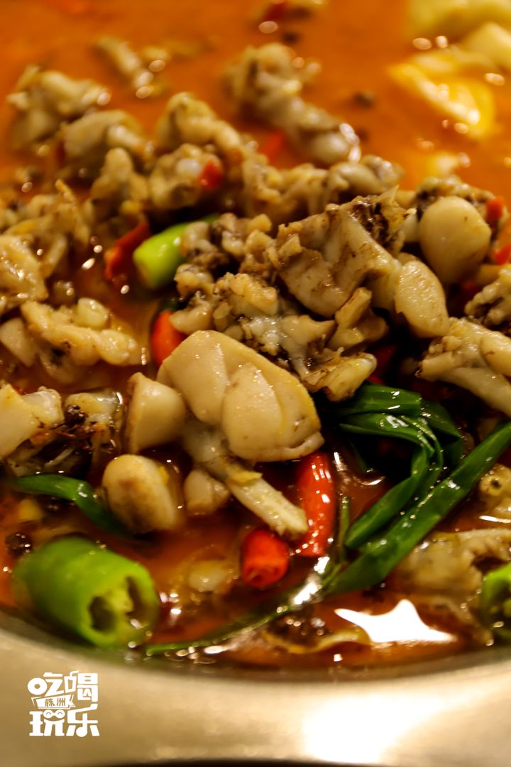 品尝过后,确实如此,蛙肉细腻,味鲜美,没有肉的腥味,每次吃到见锅底才舍得放下筷子。