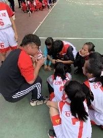 女队下午4点半对战A组第二名的泰山小学,争夺决赛资格。泰山小学防守严密,我方强攻不入,而且有两名球员,多次摔倒士气低落。在这个时候,教练员果断选择暂停,进行心理疏导,激发队员斗志,最后以16比9取得最后的胜利