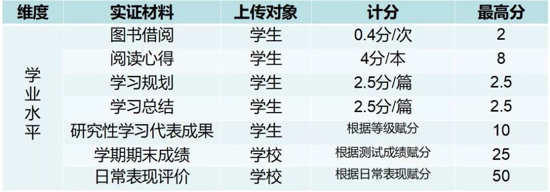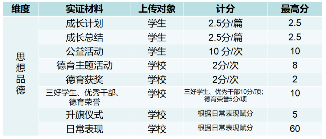 Q:5、初中学生综合素质评价各维度需要提供的实证材料有哪些?是怎样计分的?