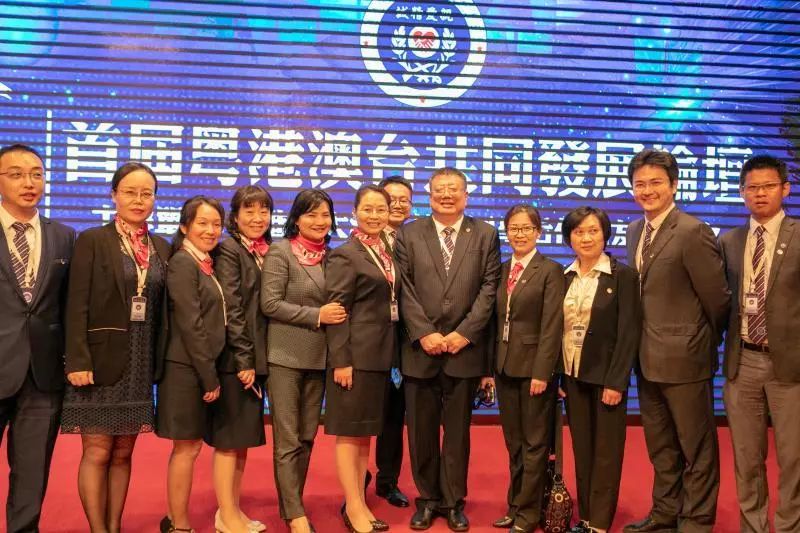 上图:会上李博士与蒋介石长曾孙蒋友松(左一)和李济深外孙李克(中)合影。下图:李博士(右二)在澳门参加首届粤港澳台共同发展论坛暨粤港澳大湾区黄埔同学后代亲友联谊会成立仪式,与任会长的前民革广东省副主委、民革中央常委的李葳(右五)合影。