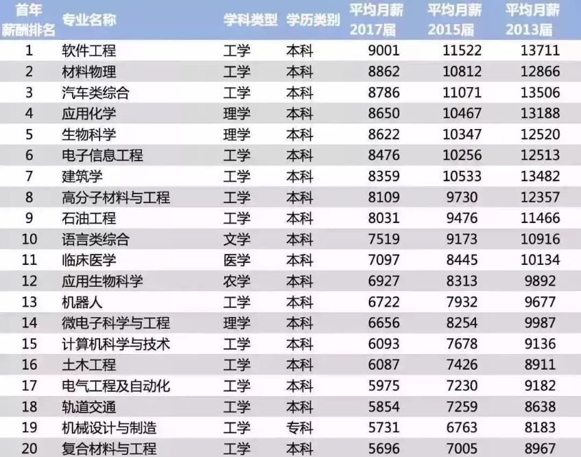 2018中国大学专业薪酬排行榜(来源薪酬网)