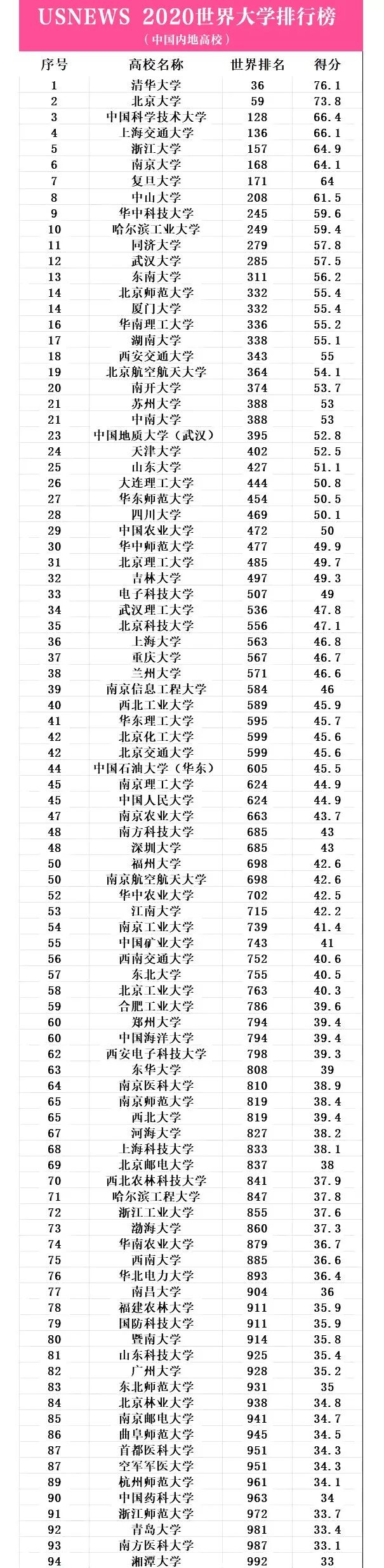 10月22日,USNews 发布2020世界大学排行榜。