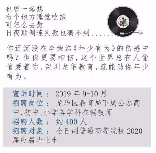 “日前,深圳市龙华区教育局发布的一条教师招聘信息上了热搜。该区拟招聘公办教师约400人,承诺年薪本科生26万元以上、研究生28万元以上,另有“事业单位正式编制、落户深圳、全年带薪休假165天+”等待遇。优厚的待遇正是深圳重视教育的一个体现。
