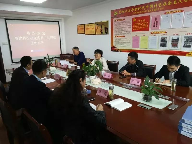 调研指导期间,巡回指导组指出,一要提高政治站位,统一思想,牢牢把握“守初心、担使命、找差距、抓落实”的总要求,深刻认识到主题教育是以习近平同志为核心的党中央作出的重大部署,要以主题教育为契机,推动律师行业党建工作全覆盖全规范全统领。二要紧跟统一部署,结合实际,认真落实各项工作任务,精心组织各项学习教育,把党建工作寓于文化建设和律所发展之中,善于提炼总结提升,真正实现党建和所建高度融合。三要坚持常态长效,实事求是,关注国家发展,找准党建工作的落脚点、切入点、结合点和长效点,通过“亮身份,作表率”,结合业务专长,发挥职业优势,积极投身社会治理,把“党建引领,发挥作用”作为实现律师价值的有效路径。