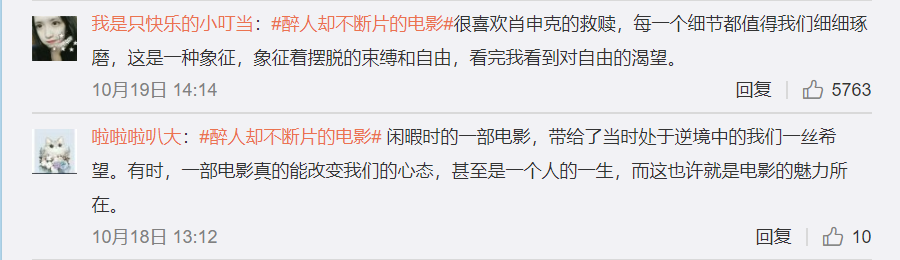 在#醉人却不断片的电影#话题下,网友们纷纷写下自己印象最深的电影,并说出自己的感想。一句句简短的影评,仿佛一场人生总结大会,精彩非常。