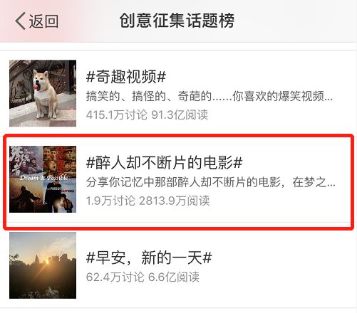 在电影展期间,由梦之蓝发起的微博话题#醉人却不断片的电影#,也吸引了众多网友踊跃参与,频频登上微博话题榜。