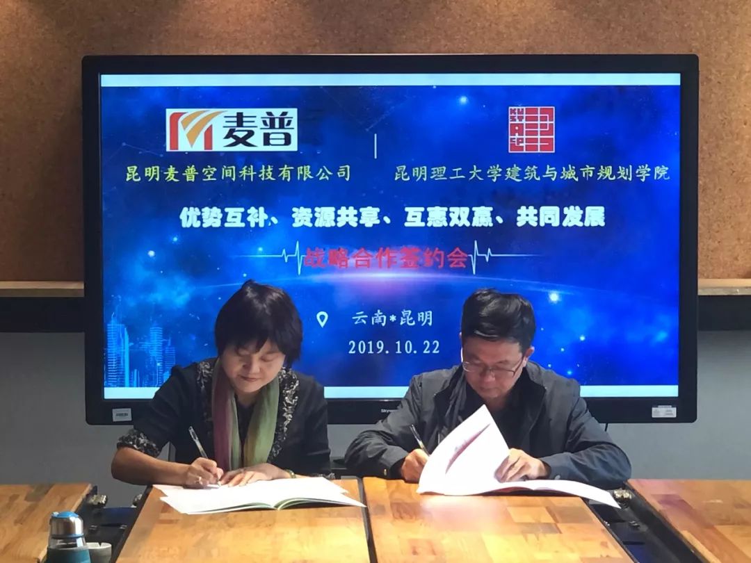 为顺应国家建立国土空间规划体系并监督实施的各项政策要求,全面推进和提升我院及昆明麦普空间科技有限公司(以下简称“麦普公司”)在国土空间规划编制方面的研究工作和项目设计水平,双方战略合作协议及校企合作协议签订仪式于10月22日在建筑楼举行。