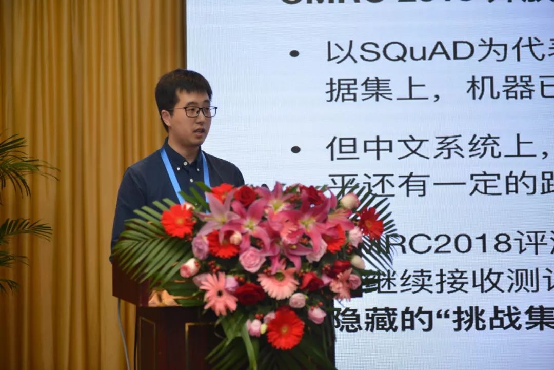 博士生崔一鸣在本次大会的评测研讨会环节作了题目为《第三届“讯飞杯”中文机器阅读理解评测总结》的报告。