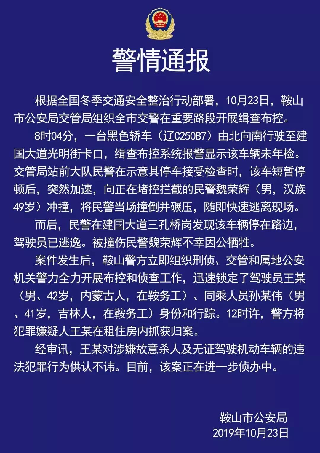 案件发生后,鞍山警方立即组织刑侦、交管和属地公安机关警力全力开展布控和侦查工作,迅速锁定了驾驶员王某(男、42岁,内蒙古人,在鞍务工)、同乘人员孙某伟(男、41岁,吉林人,在鞍务工)身份和行踪。12时许,警方将犯罪嫌疑人王某在租住房内抓获归案。